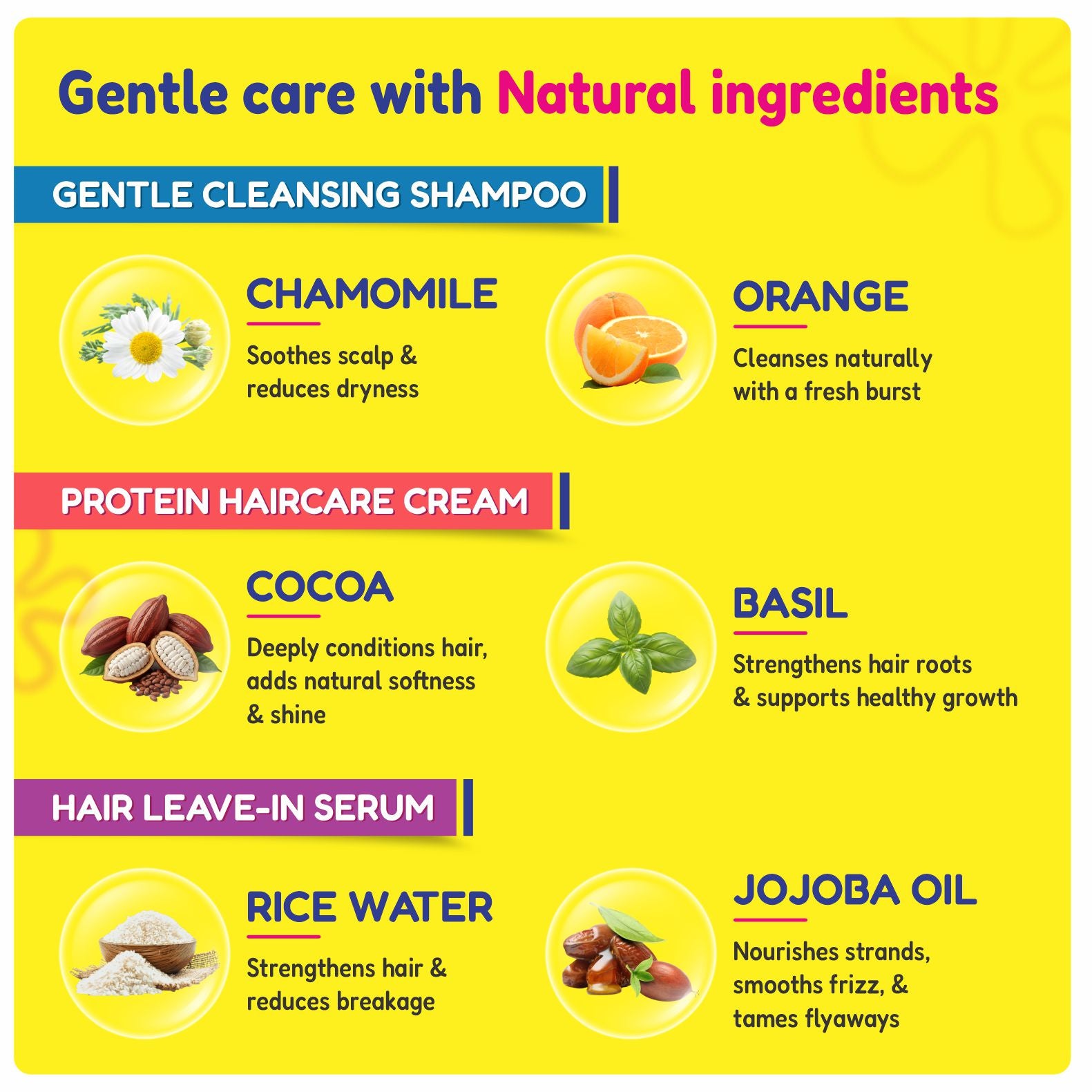 Specially designed for boys aged 3–12 years, this combo combines the gentle cleansing power of Chamomile & Orange, the nourishing strength of Cocoa & Basil, and the smoothing care of Rice Water & Jojoba Oil.
