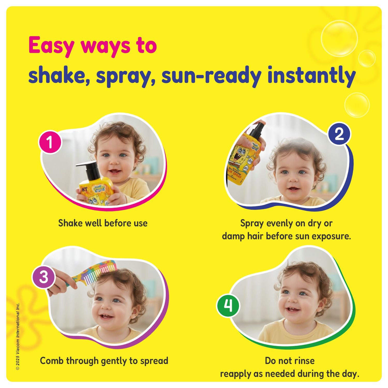 • Protect: Spray Sun Protection Hair Spray before going outdoors