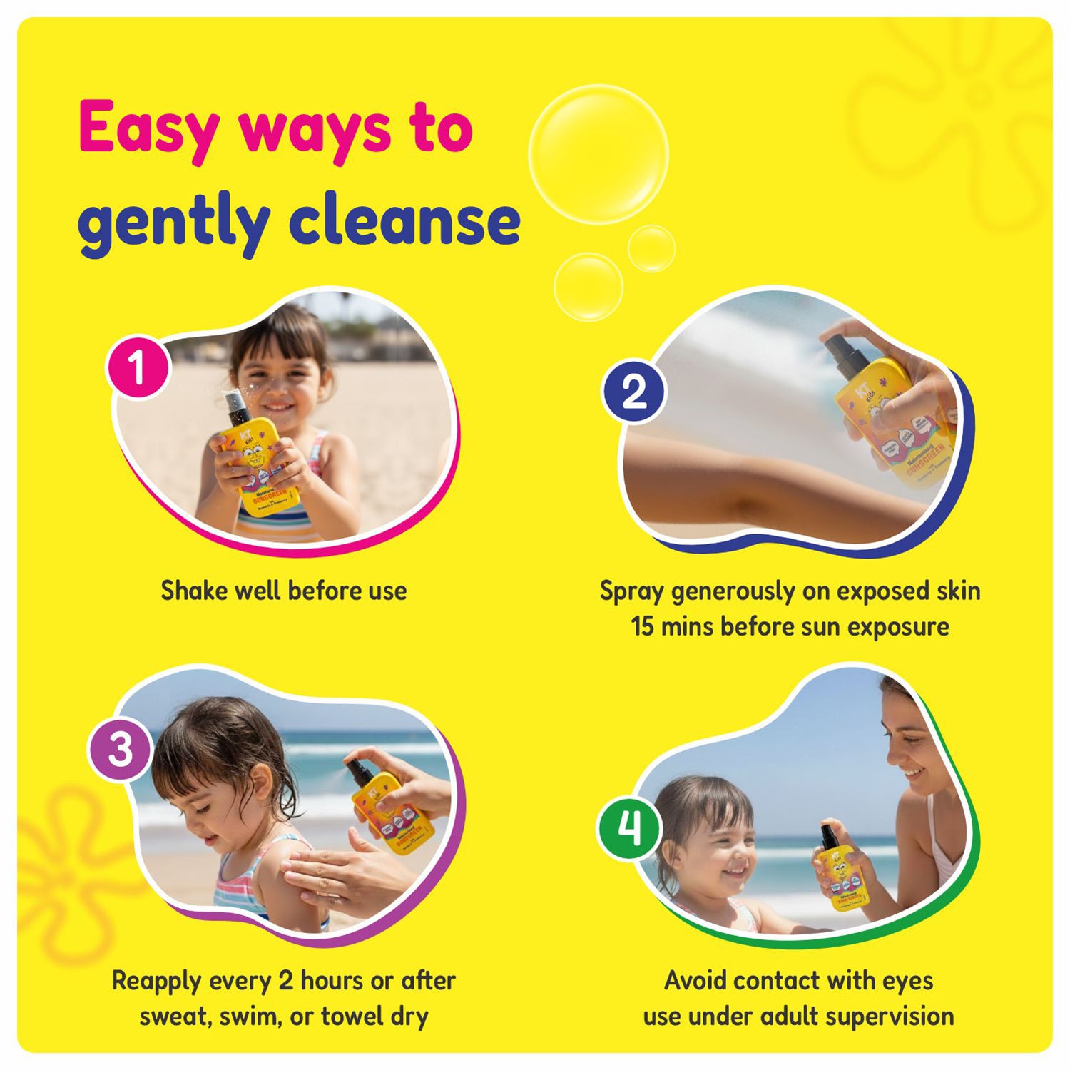 The KT Kids Moisturizing Sunscreen Spray uses Blueberry and Cranberry to help keep the scalp and skin fresh, while providing natural nourishment. It is developed for Indian weather, where children face daily heat and humidity.